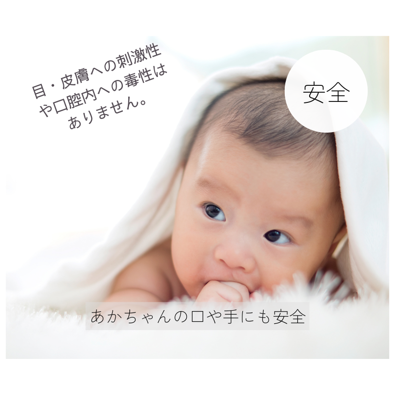 成分:次亜塩素酸ナトリウム(有効塩素濃度100ppm)、RO高純水