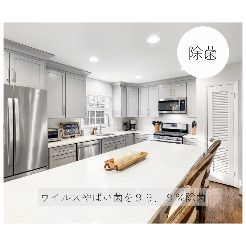 ウイルス・ばい菌にすぐ作用して 99.9%以上を除去。